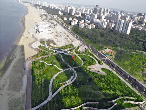 烟台属暖温带季风气候,但是濒海地又受到海洋性气候的影响,经常受海潮海风侵袭和土壤盐渍化、干旱化威胁,导致适宜生存的植物种类少、绿化难度大。该项目紧临海边,因此,如何正确选择植物品种,在提高植物成活率的同时又保证景观效果的丰富,是其面临的一大难题。