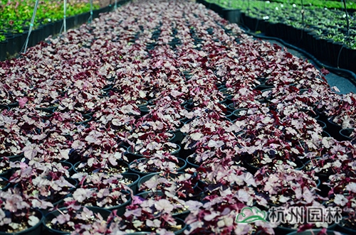 目前长势较快的矾根、铁筷子、岩白菜、大黄属植物等均已陆续展叶、开花。其中矾根喜半荫,花期4-10月,叶片色彩丰富,有的品种叶背面色彩也相当艳丽,且叶片颜色会随季节、环境和温度的变化而变化。矾根多用于林下花境、地被、庭院绿化,是理想的宿根花境材料。目前杭州园林已建立了多个矾根品种的的组培快繁技术体系,为其产业化生产打下坚实的基础。