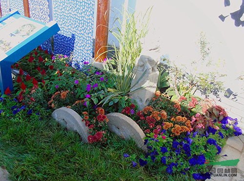 ②为展现浙江特色的山水景色,使“浙江园”在花博会开园期间呈现出层次丰富、色彩艳丽的绿化景观,在植物造景方面大量运用了自然花境、花带、生态墙等多种手法,颜色以红、黄等亮色调为主,花境植物品种经筛选后达70多种,如黄金构骨、金姬小蜡、紫菀、矮麦冬、八仙花等。为保证景观效果,这些花境及植物材料被提前运到银川,通过修剪、培育等多种技术手段促进花芽分化,对花期进行调控,使这些花境植物展现出长势繁茂、花团锦簇的良好状态。