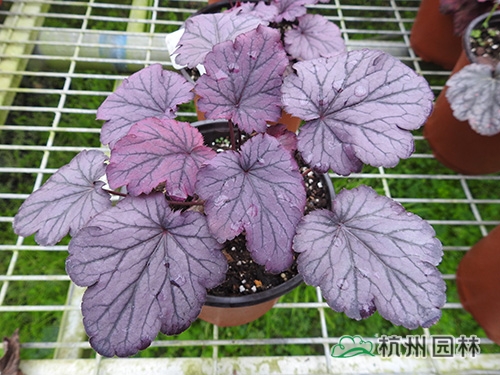 矾根又名小花肾形草,英文名为“Alum root”(因根部不规则膨胀而来),因此在引入中国的时候被翻译成了“矾根”。矾根叶色繁多,且叶色会随着季节、环境、温度和光照条件的变化而改变。例如,‘蜜桃黄’在春天的时候,叶子展现出细腻的银色光泽,成熟的叶片颜色会呈现紫色并略带玫瑰红;‘赤砂岩红’的叶色会从桃红色变为亮铜黄色,再变为绿色带有琥珀色;‘贵族紫’叶子的颜色会保持稳定的紫色,冬天的叶子会变成银色。