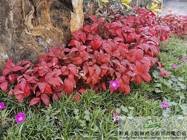 火红的南天竹,点亮了这一片秀丽的风景