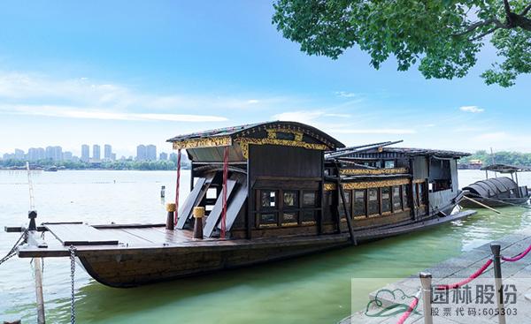 ▲嘉兴南湖景区内停泊的中共一大纪念红船,再现了中国共产党诞生的历史瞬间