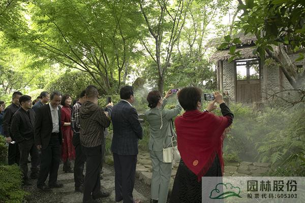 在李寿仁的带领下,与会人员首先参观了画境·青山湖花园中心室外景观展示区。五月的花园中心,绿意盎然,繁花绽放,铺展开一幅生态自然、清新怡人的风景画卷,引来大家的不断赞叹,纷纷直呼“太美了!”“太漂亮了!”