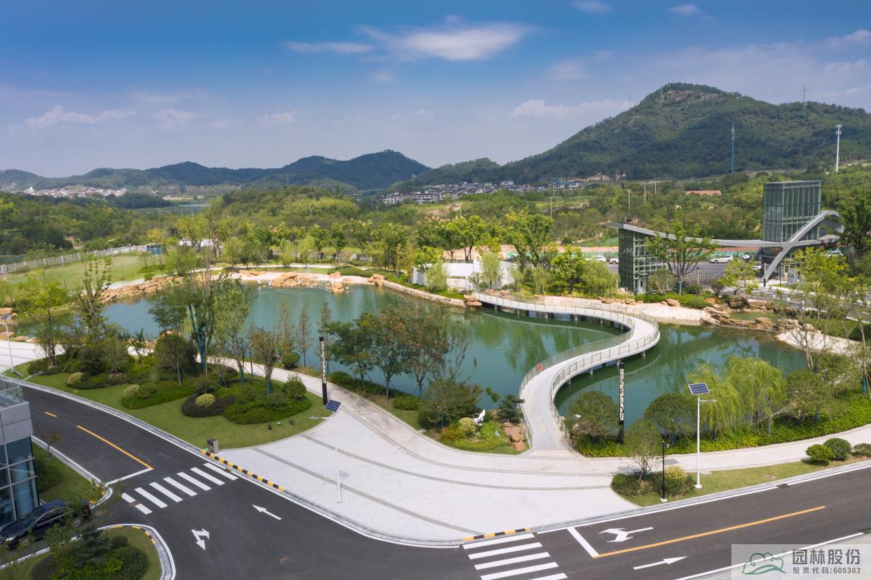 义乌市垃圾焚烧发电厂提升改造项目景观园林绿化工程(一标段)项目位于义乌市赤岸镇华川深能厂区内,工程内容包括道路铺装、知行园、透景曲桥、观景平台、能量镜池、涌动广场、休闲廊架、假山塑石、绿化种植等。
