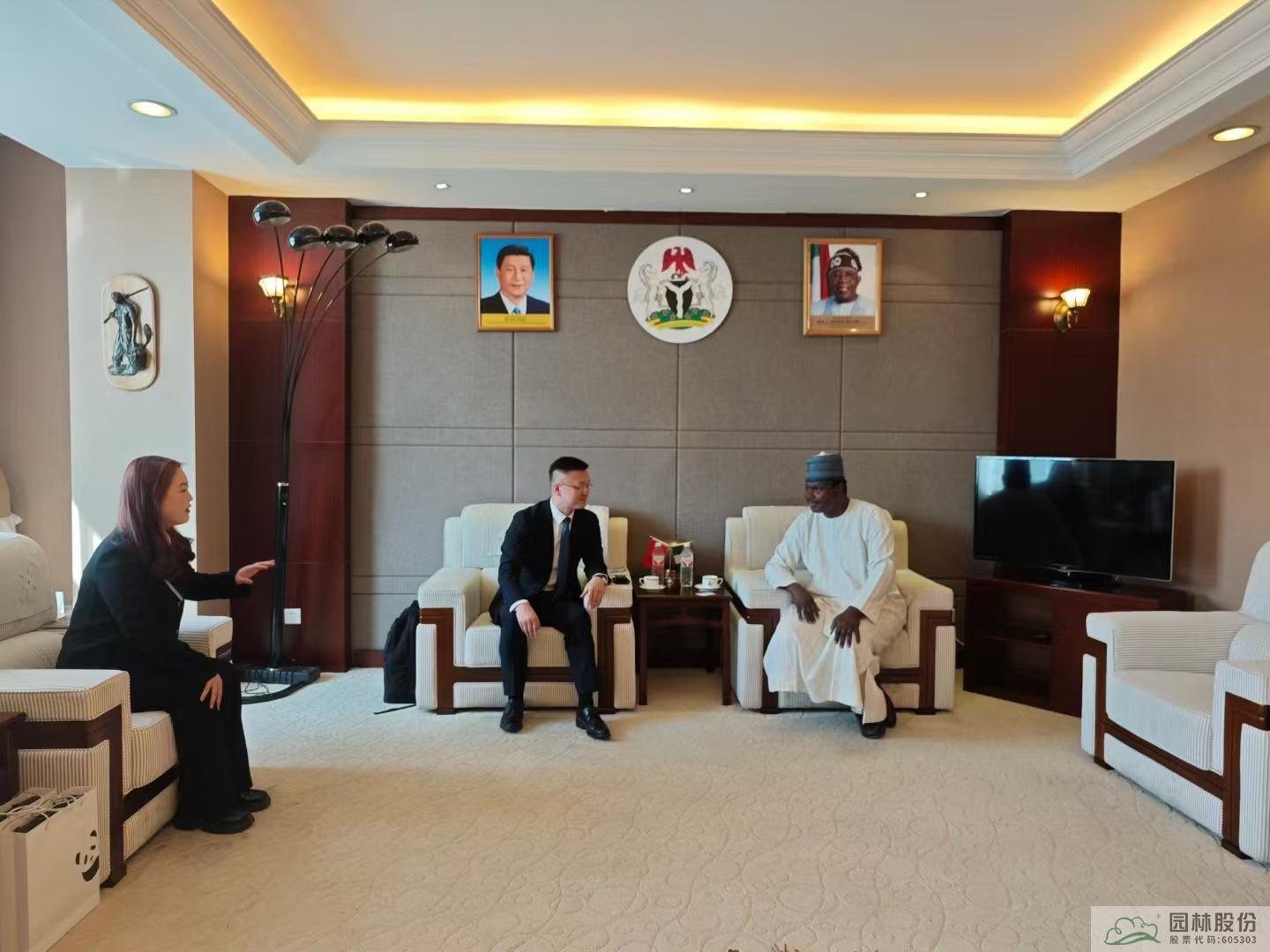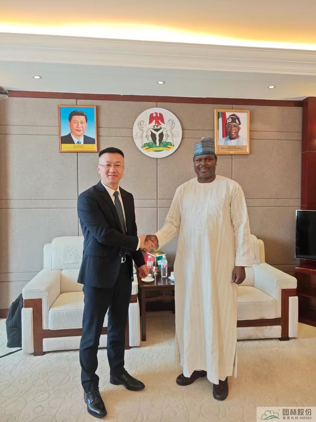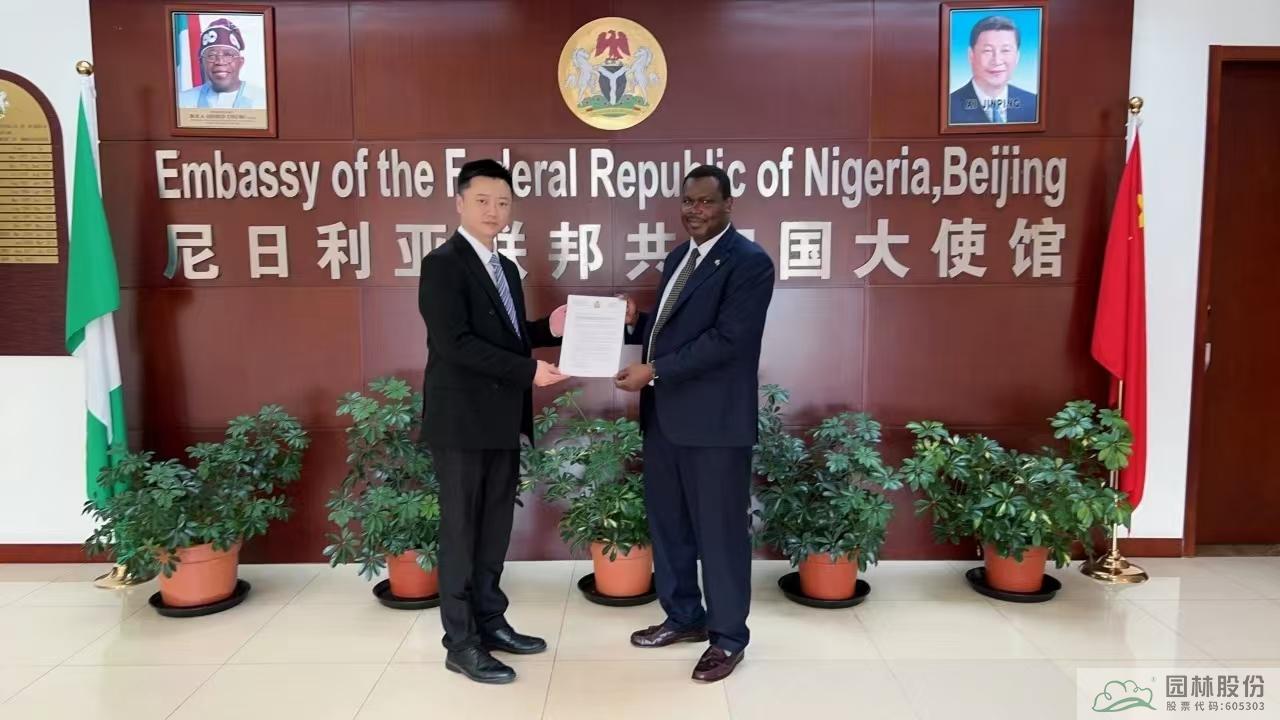 2024年9月,在杭州第三届全球数字贸易博览会-“数智中非”产业对接会上,园区已取得“尼日利亚国家馆”正式授权。此次拜访尼日利亚驻华大使馆,陈振华与驻华大使巴巴加纳·瓦基勒(Babagana Wakil)就国家馆建设、农产品贸易、投资合作等议题进行了深入交流。