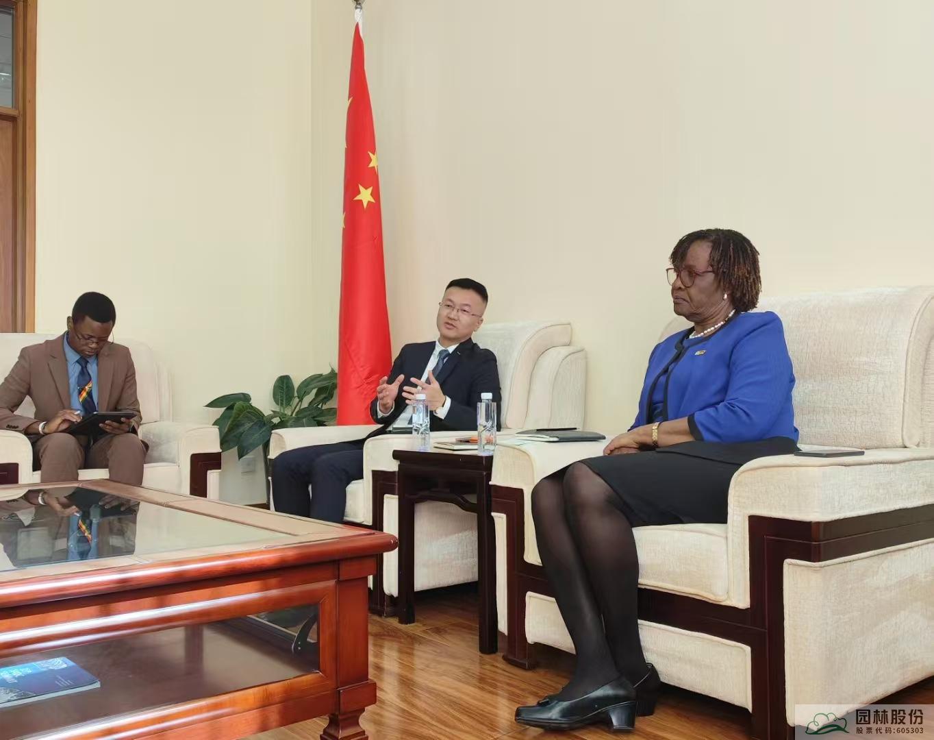 陈振华与津巴布韦驻华大使阿比盖尔·绍尼瓦(Abigail Shoniwa)进行了会谈。陈振华介绍了园区的发展情况以及在进出口贸易方面的优势,并表示希望与津巴布韦推进双边贸易、投资、文化等领域开展深入合作。