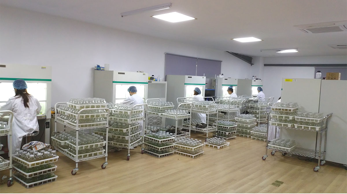 (1)全光照喷雾扦插育苗技术 全光照喷雾扦插技术具有生根期短、成活率高和操作简单等优点。研究院已建立了桂花、冬青、降香黄檀、新优宿根植物等数百种植物的全光照喷雾扦插技术体系,年度育苗量200多万。
